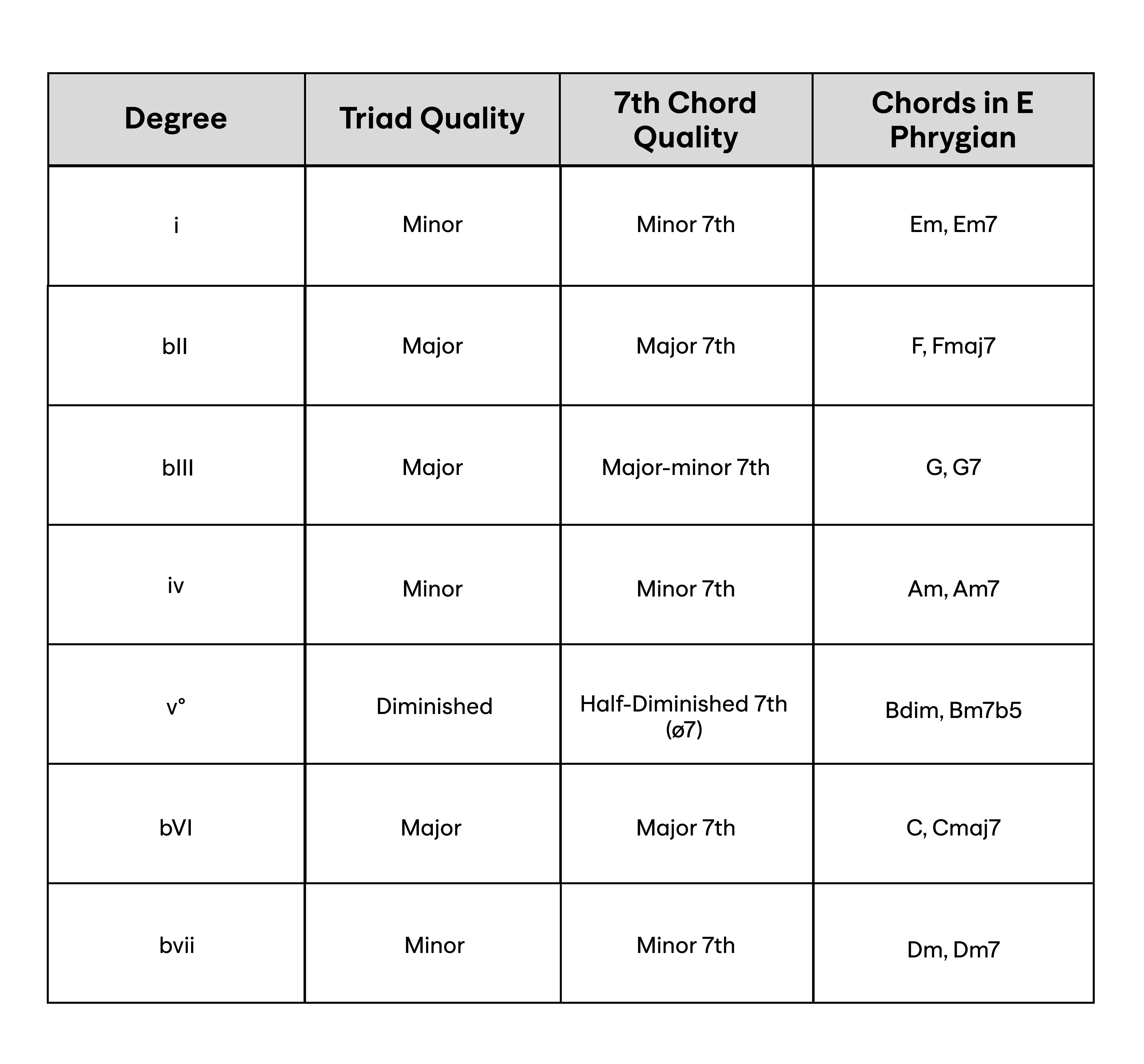 Chord Qualities within the Phrygian Mode