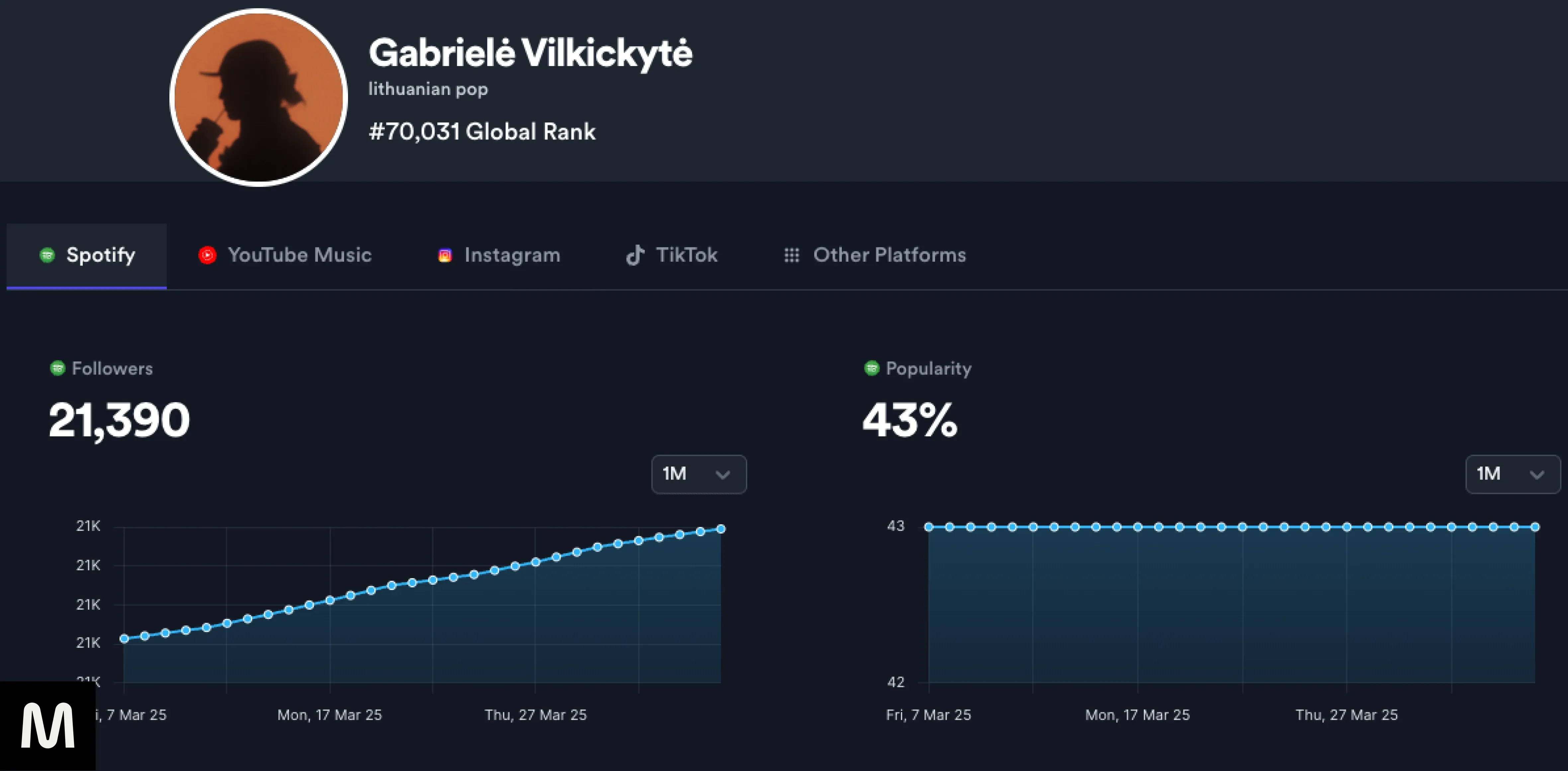 Track Level: Looking into individual songs allows you to monitor their performance and identify which ones are gaining the most attention.